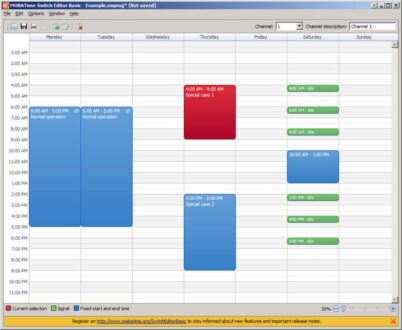 Con la versión básica de Switch Editor, se pueden definir programas de conmutación para dispositivos MOBATIME como el masteclock DTS 480x, el KR 461/465 o el ETC, por ejemplo, con herramientas sencillas y familiares (similares al calendario de Outlook).
