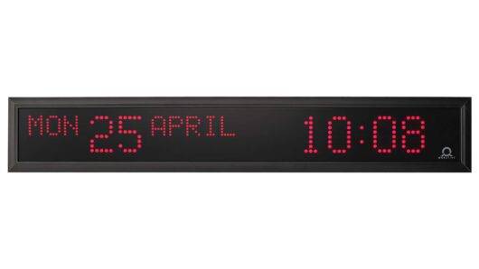 L’horloge calendrier affiche simultanément les informations relatives à l’heure et à la date. Les informations relatives à la date peuvent être affichées dans l’une des 16 langues disponibles. Une seule unité d’affichage peut être sélectionnée pour alterner entre 3 langues différentes.