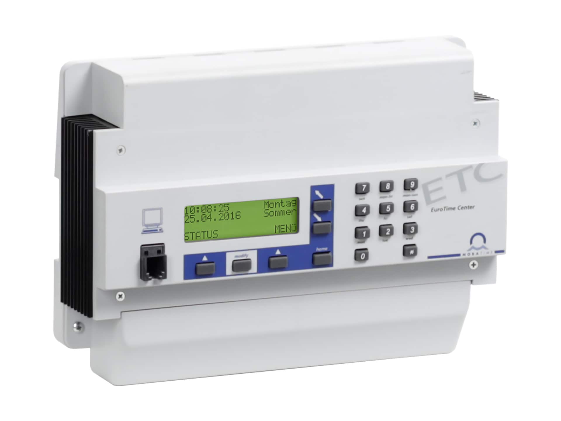 The EuroTime Center ETC operates conventional clock systems with impulse-controlled slave clocks as well as modern, self-setting MOBALine installations. Absolute precision of ETC’s internal clock can be achieved by synchronization to an external time reference such DCF77 or GPS.