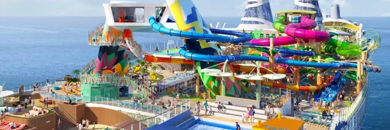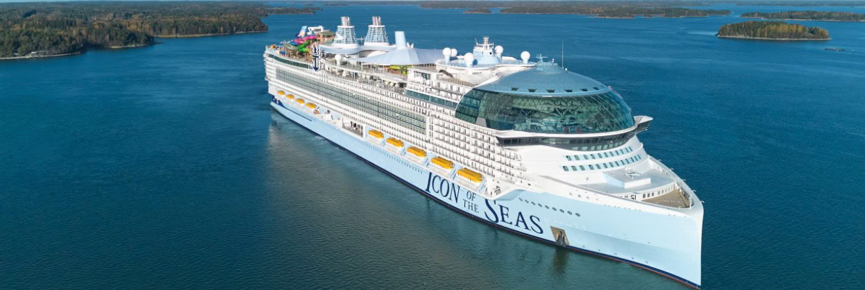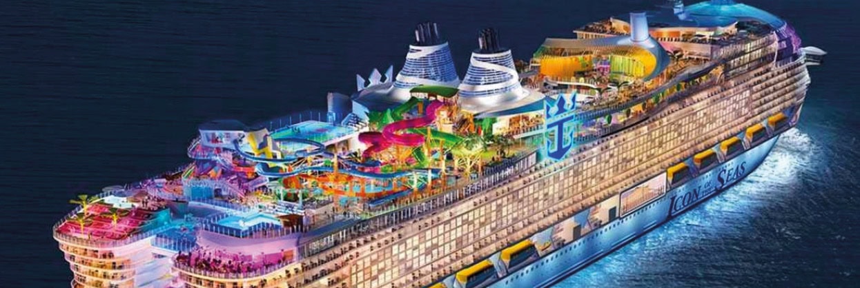 Full view of the ship Icon of the Seas, set to sea in January 2024 and produced by shipbuilder Meyer in Turku. Source: Wikipedia