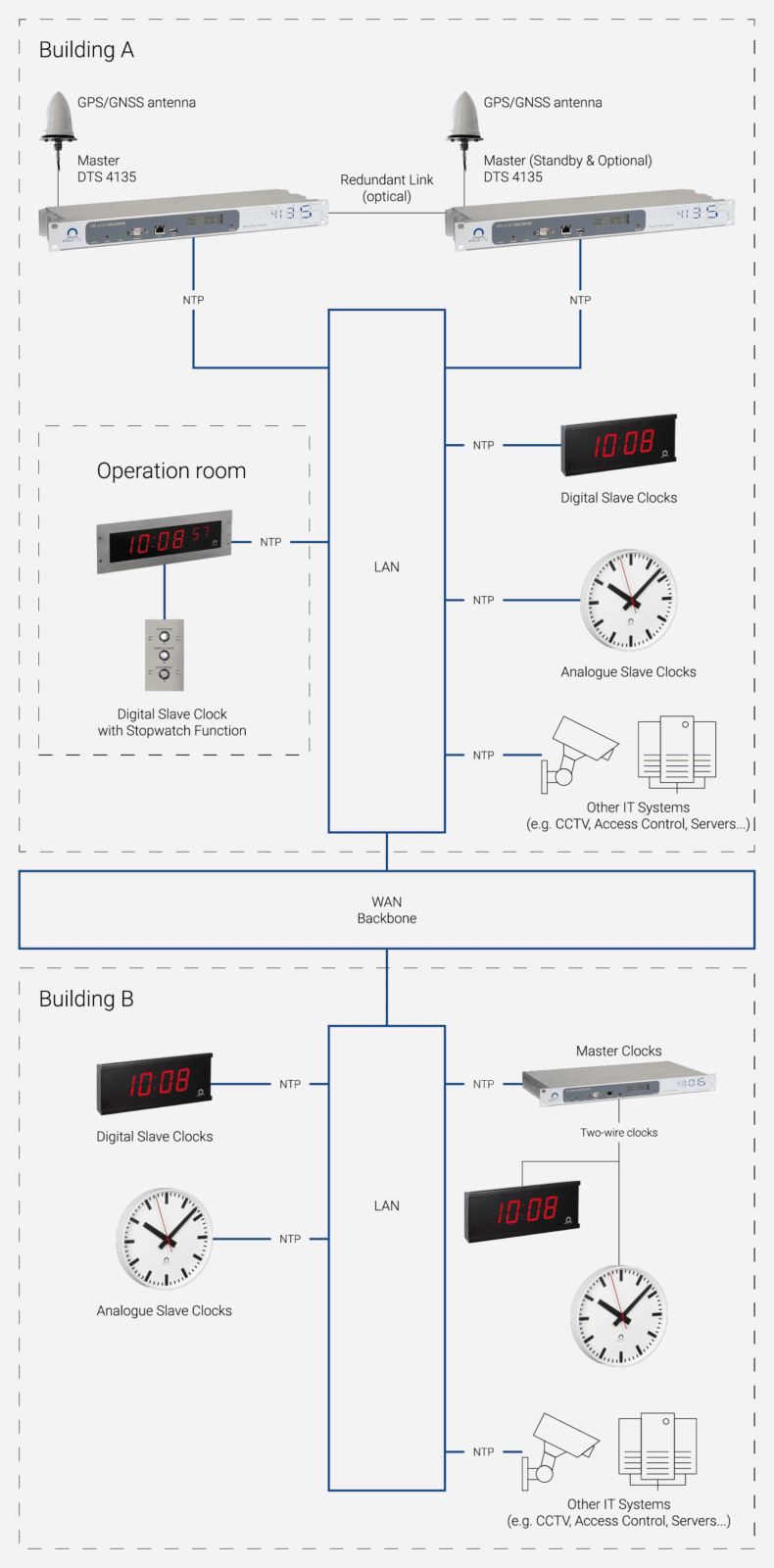 - It is crucial to maintain an accurate time in the different subsystems throughout the healthcare infrastructure, including but not limited to IT-network, data exchange, backup database, CCTV, Access Control and Slave clocks