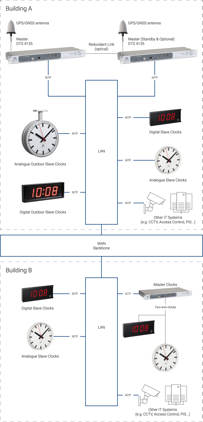 NTP is used in timetable management, for example, to ensure that trains depart and arrive on time. This is not only important for passenger comfort, but also for the entire logistics of rail transport. Furthermore, the synchronization of signals and points with NTP can prevent dangerous situations such as collisions. Passenger information systems also benefit from time synchronization. Display boards and announcements are synchronized to provide passengers with reliable information. Finally, NTP is used in the maintenance and monitoring of railway infrastructure. Sensors and monitoring systems generate accurate time stamps for data collection, which is essential for maintenance and safety.